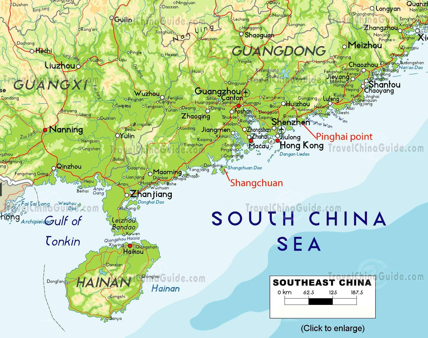 Hiina lõuna-kaart. Kaart lõuna-Hiina (Ida-Aasia ja Aasia) print. Kaart lõuna-Hiina (Ida-Aasia ja Aasia) alla laadida.